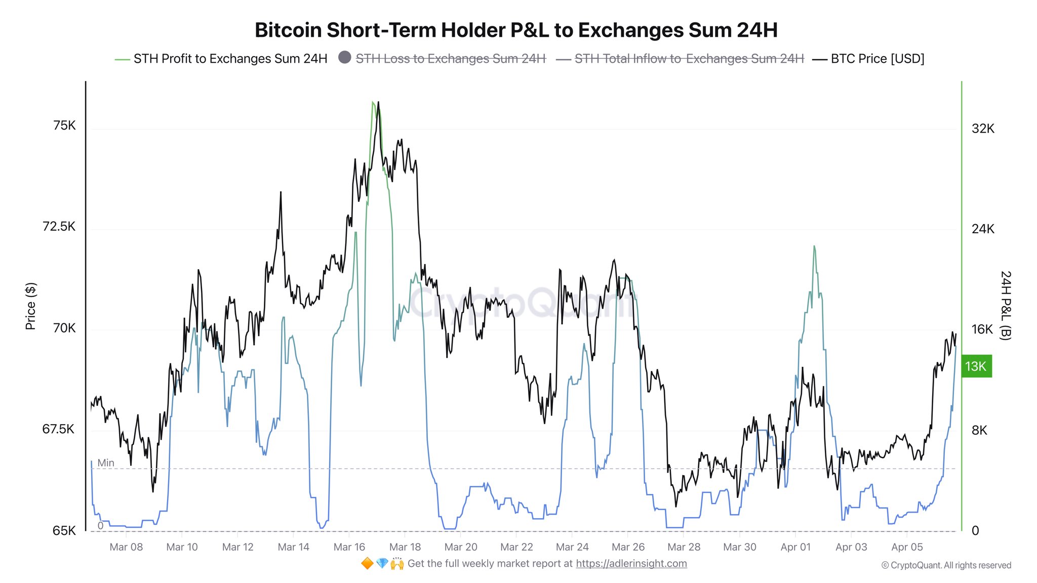 “Cuidado, la toma de ganancias por parte de los holders de corto plazo se está acelerando mientras BTC vuelve a testear el nivel de 70.000 dólares”, escribió el 6 de abril de 2026 en su cuenta de X.