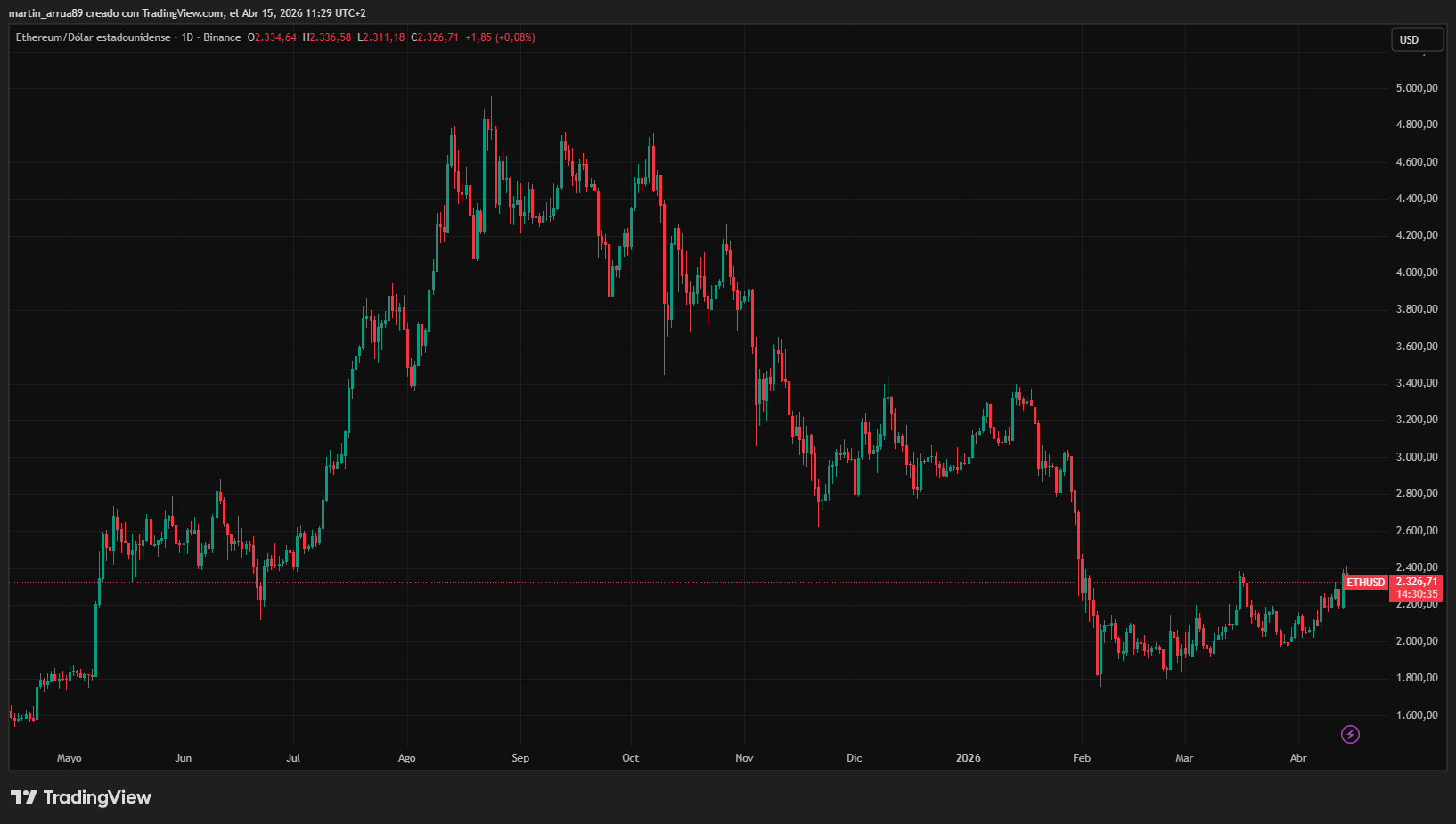 Esta estrategia implica que las variaciones de precio de la criptomoneda impactan de forma directa en sus resultados. Ether, por ejemplo, cotiza en 2.324 dólares, un 53% por debajo de su máximo histórico de 4.946 dólares, lo que explica parte del deterioro en la valuación de las reservas de Bitmine.