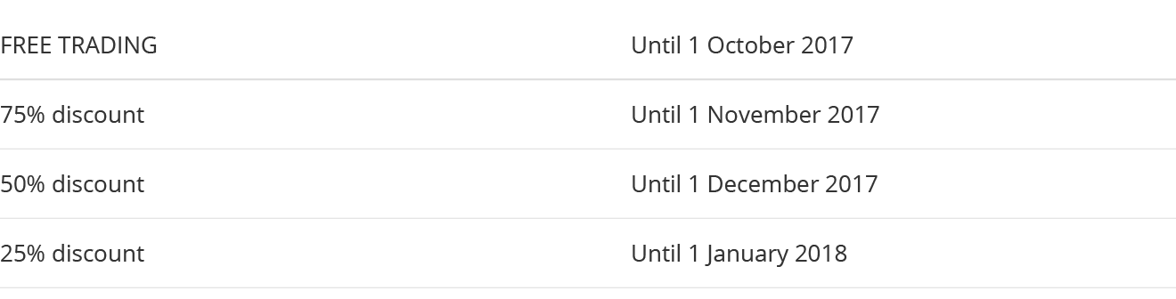 Asimismo, Bitstamp dio a conocer que las comisiones que provengan de la compra o venta de Ethereum tendrán el beneficio de un descuento que se irá reduciendo cada cuatro semanas. Comenzando con seis semanas de free trading desde el 17 de agosto hasta el 1 de octubre.