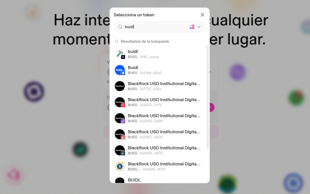 CriptoNoticias pudo comprobar que, al momento de esta publicación, no se encuentra el verdadero fondo BUIDL disponible en Uniswap para el público masivo (aunque sí hay varios tokens que llevan ese nombre, que enada tienen que ver con el original).