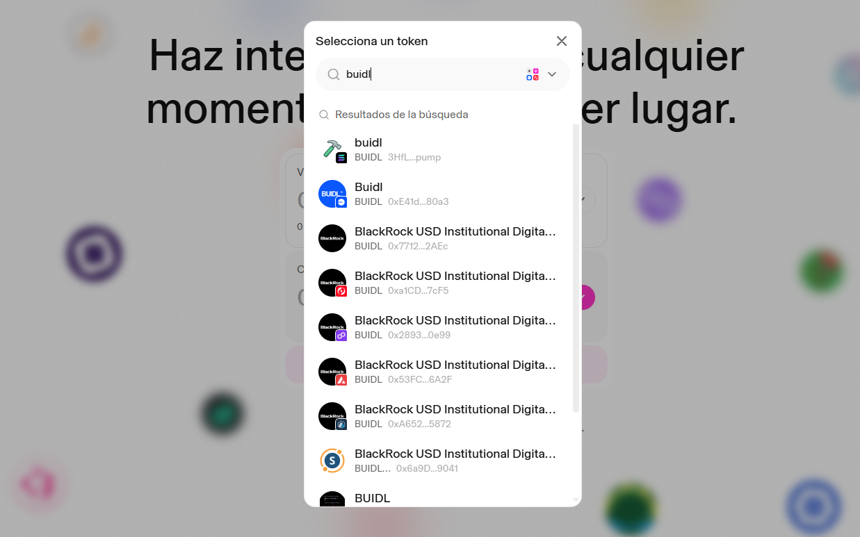CriptoNoticias pudo comprobar que, al momento de esta publicación, no se encuentra el verdadero fondo BUIDL disponible en Uniswap para el público masivo (aunque sí hay varios tokens que llevan ese nombre, que enada tienen que ver con el original).