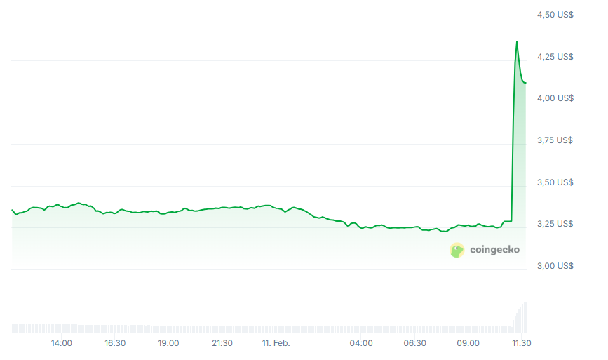 UNI tuvo una subida de 22% durante la jornada de hoy, llegando hasta los 4,28 dólares en su mejor momento del día. Probablemente, el mercado esté esperando a confirmaciones oficiales antes de realizar mayores inversiones en esta moneda digital.