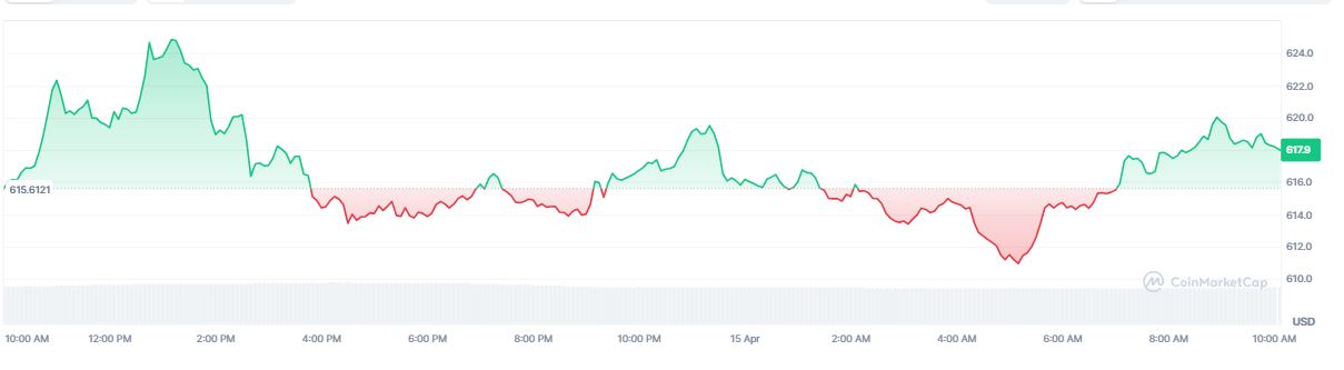 Sin embargo, en este caso la reacción inmediata fue limitada. Prueba de ello es que al momento de la redacción de este artículo, 15 de abril de 2026, BNB cotiza en 617 dólares y apenas registra una suba del 0,28% en las últimas 24 horas.