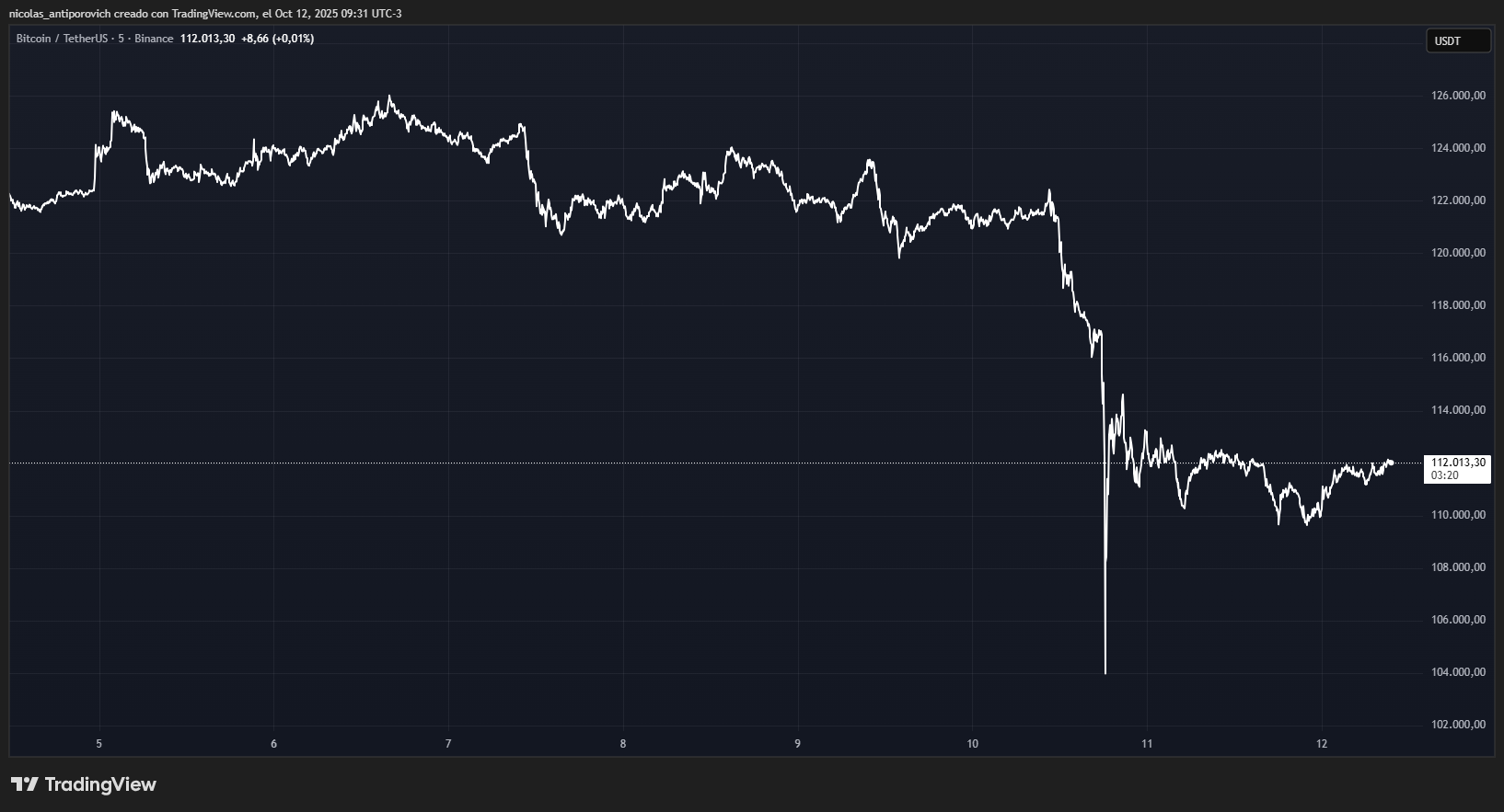 Tras celebrar un nuevo máximo histórico por encima de los 126.000 dólares el lunes 6 de octubre, el precio del activo digital experimentó una fuerte corrección el viernes, cayendo hasta niveles cercanos a los 102.000 dólares.