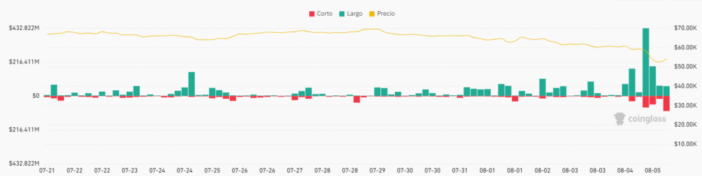 El resto corresponde a posiciones en corto (short), es decir, traders que habían invertido por la baja de precio de los criptoactivos.