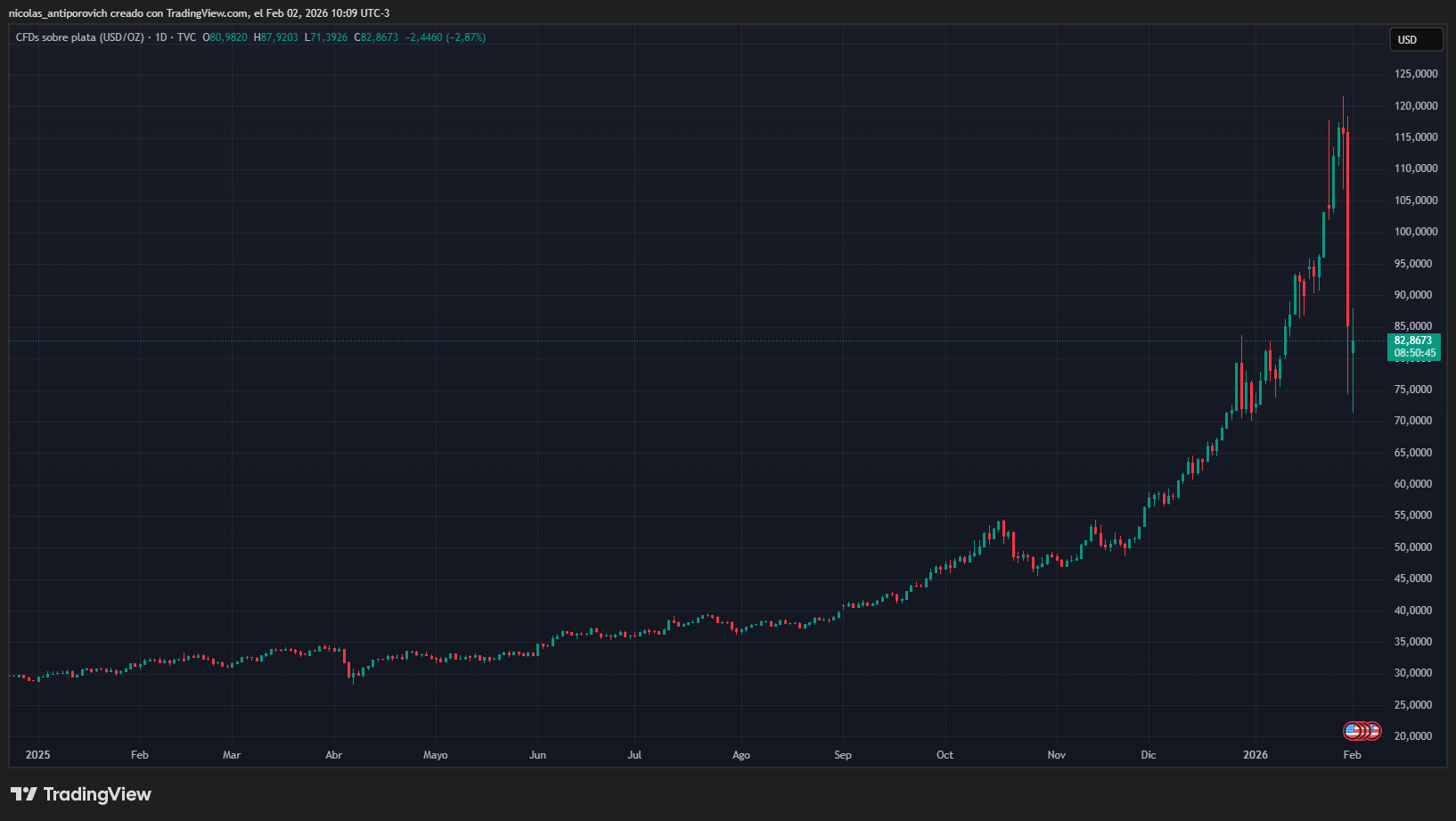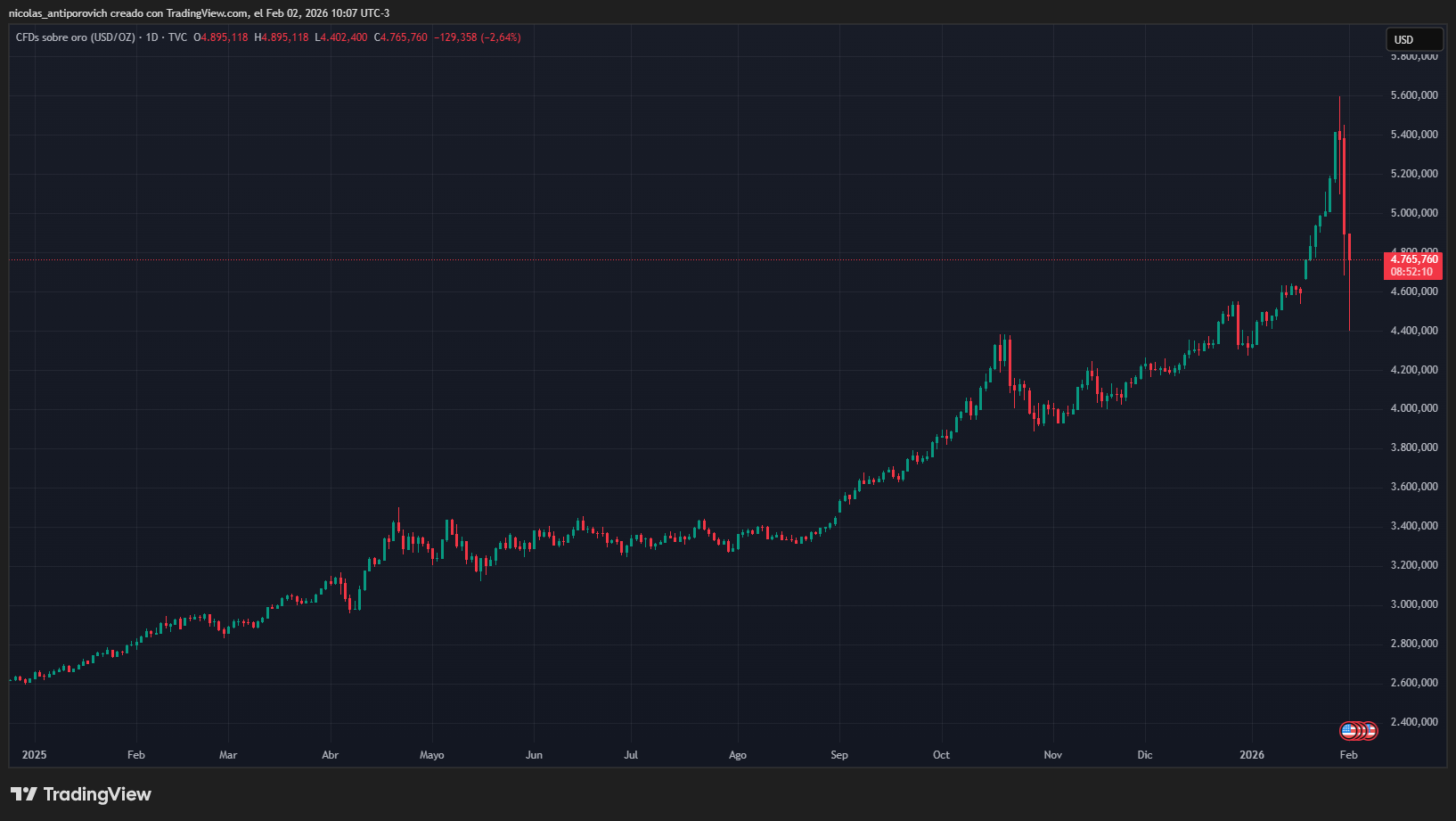 Este retroceso me parece positivo; realmente hubo un exceso en el oro, la plata y también en algunas acciones tecnológicas. Mi opinión es que habrá un repunte en los próximos días.