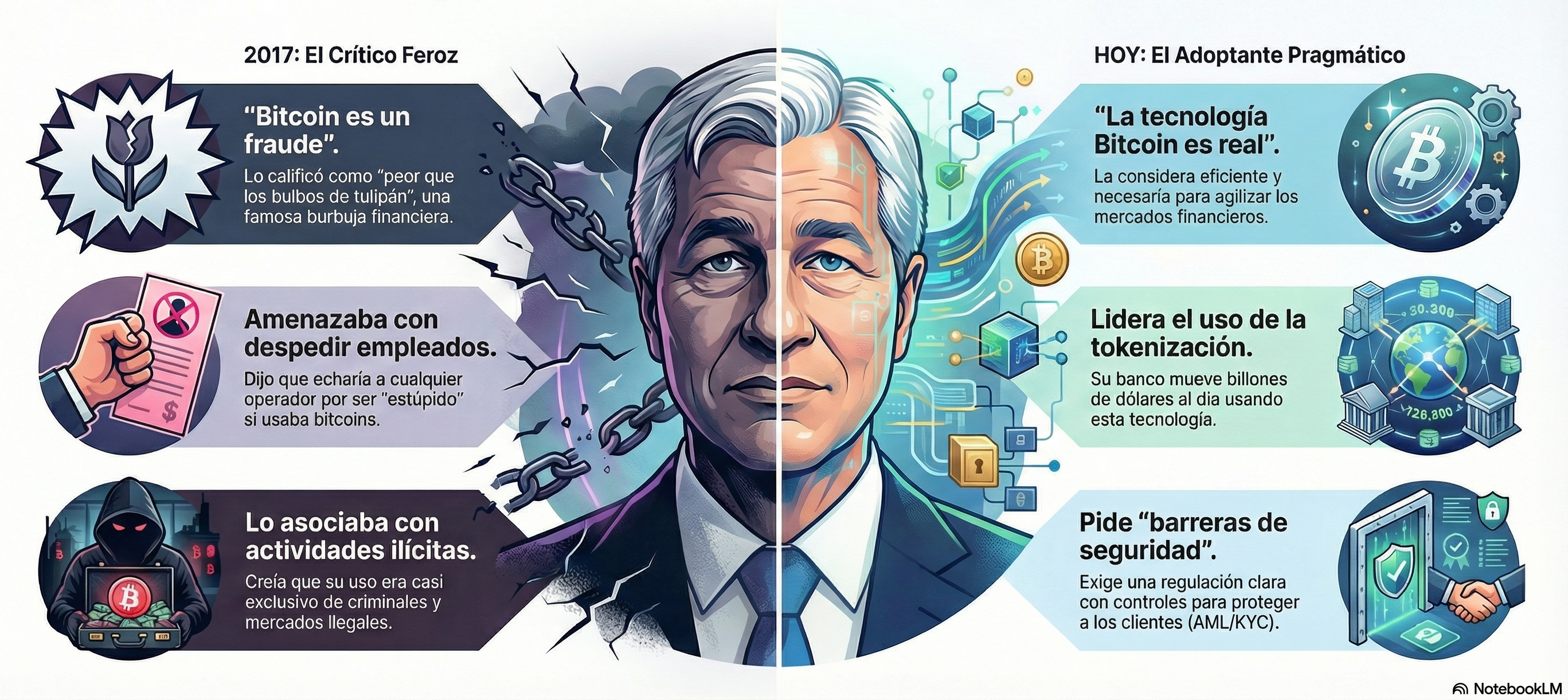 De llamar «estúpidos» a quienes comerciaban con monedas digitales, Dimon ha pasado a liderar un banco que busca integrar activamente esta tecnología para no quedarse atrás en la carrera financiera global.