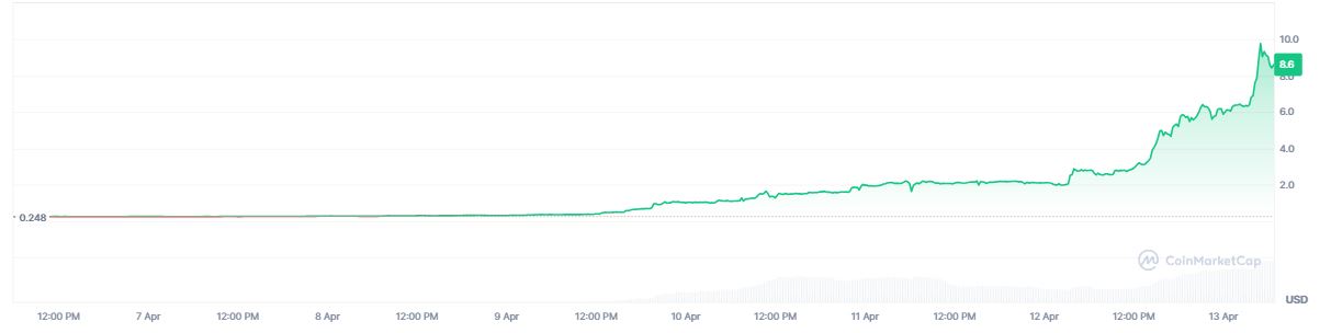 Entre el 7 y el 13 de abril, el token pasó de 0,24 a 9,01 dólares, lo que representa una subida del 3.654%. De esa forma, RAVE se posiciona como el activo digital de mejor rendimiento semanal dentro del top 100 por capitalización de mercado.