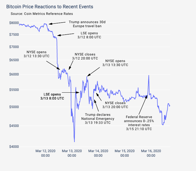 El informe presentado por Coin Metrics considera que el comportamiento visto recientemente en ambos mercados da cuenta de que las criptomonedas reaccionan actualmente a eventos externos más que nunca.