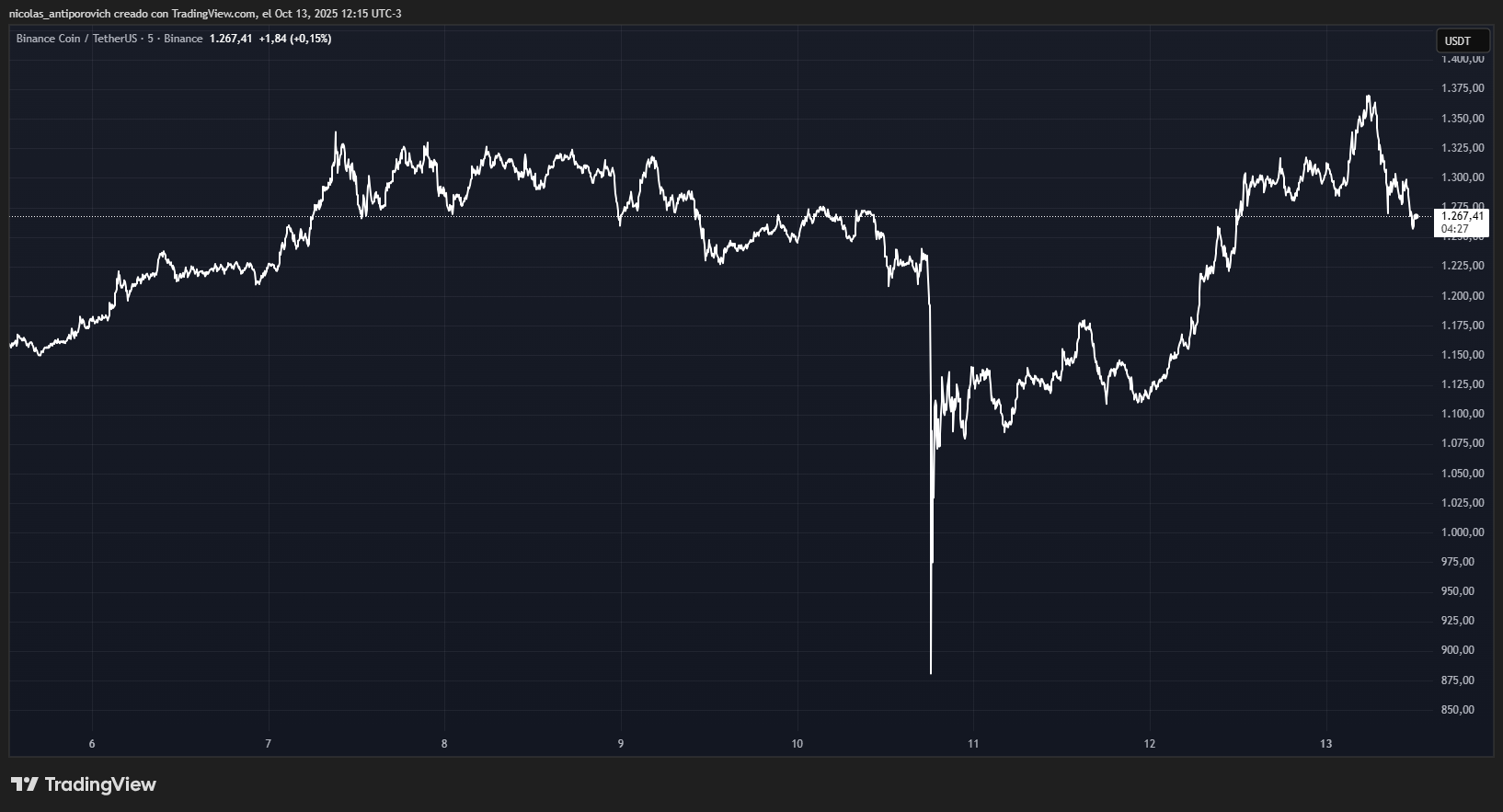 BNB, la criptomoneda nativa del exchange Binance y de la red BNB Smart Chain, alcanzó un nuevo máximo histórico (ATH, por sus siglas en inglés) de USD 1.370 este lunes, mostrando una notable recuperación tras la abrupta caída que afectó al mercado de activos digitales el pasado viernes 10 de octubre.