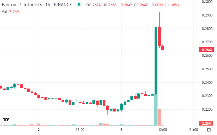 El precio de FTM pasรณ de USD 0,22 a USD 0,29 en cuestiรณn de una hora.