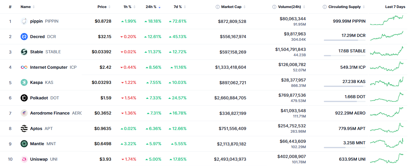 Incluso con el ligero retroceso, UNI se ubica así como el décimo criptoactivo con mejor desempeño en las últimas 24 horas de los cien que tienen más capitalización.