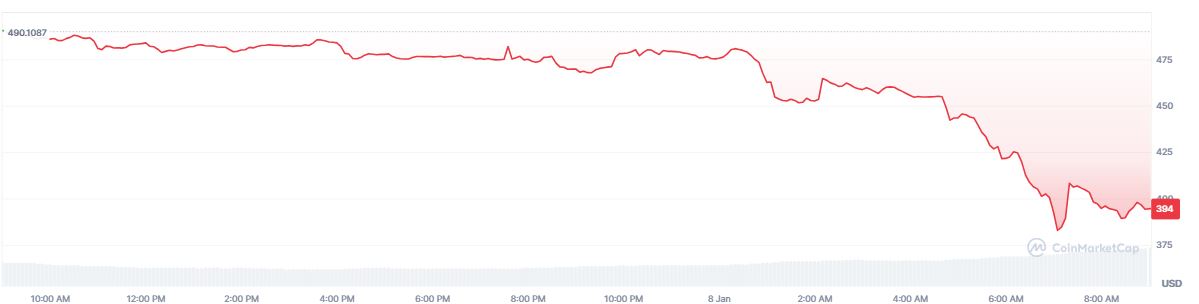 Desde que se conociรณ la noticia, la cotizaciรณn de ZEC pasรณ de 490 a 390 dรณlares, lo que representa una caรญda del 20%, tal como se observa en el siguiente grรกfico: