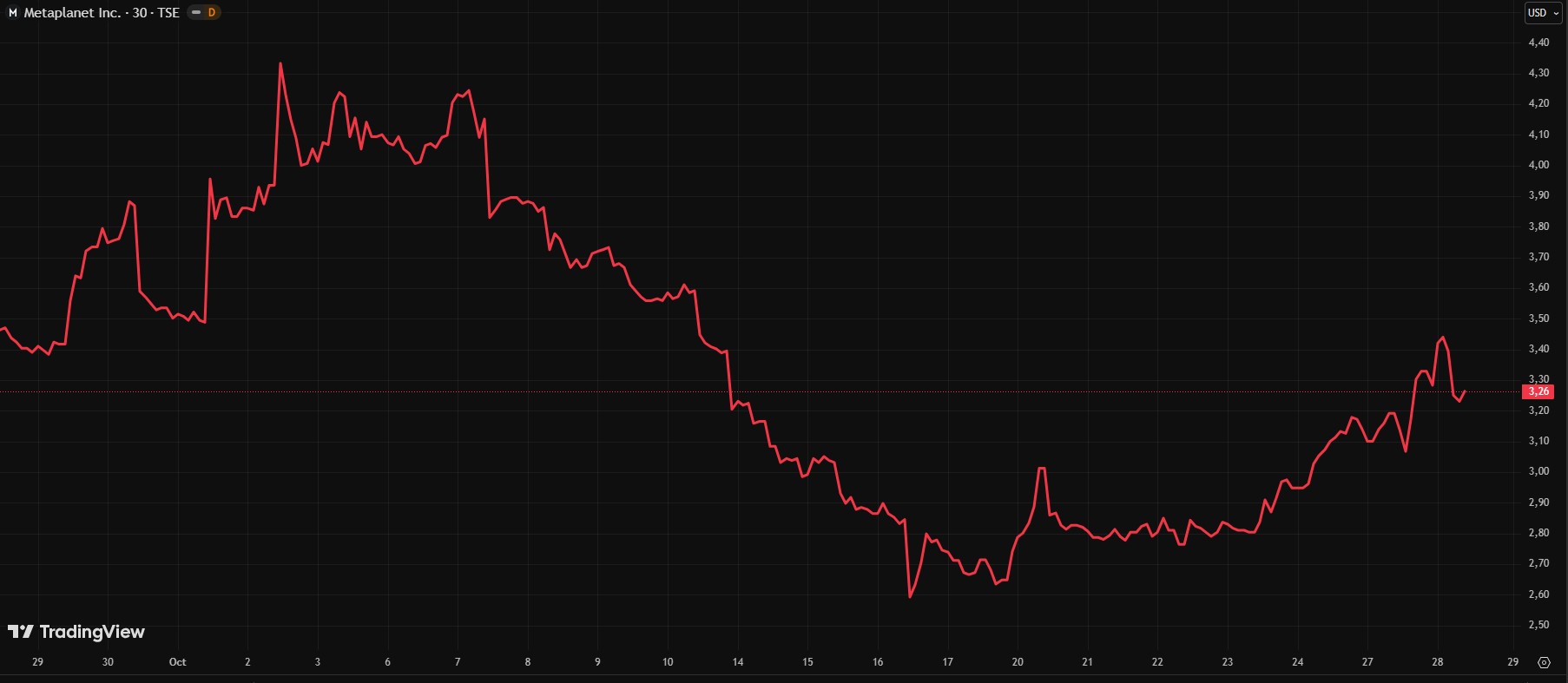 El 14 de octubre, el valor de mercado de la compañía cayó por debajo de sus tenencias de BTC, reflejando una pérdida de más del 70% desde su máximo histórico alcanzado en junio, reportó CriptoNoticias. El descenso mostró una reducción en el interés del mercado por las firmas que mantienen bitcoin como parte central de su balance.