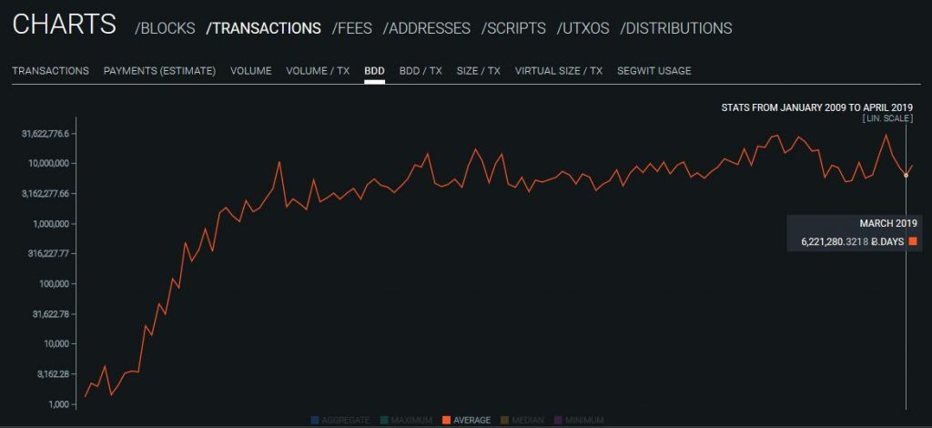 El propósito detrás de BDD es considerar en la ecuación del volumen de transacciones, el número de días que cada bitcoin permanece en una dirección, con la finalidad de entender qué tan rápido se puede desplazar el activo en un periodo de tiempo determinado.