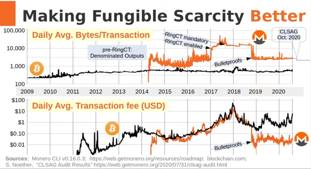 En su presentación, Kim menciona las tres tecnologías que promueven la fungibilidad en Monero. Estas son las firmas de anillo, que mantienen privadas las transacciones de los remitentes; las direcciones furtivas, que mantienen a los receptores de las transacciones en modo privado; y «bulletproof», que se encarga de mantener la privacidad de los montos de las transacciones enviadas.