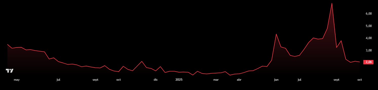 A nivel bursátil, aún es temprano para definir si la incorporación de DOGE está beneficiando o no a CleanCore. El siguiente gráfico muestra cómo ha sido el comportamiento de sus acciones (que cotizan con el ticker ZONE) desde abril de 2024. La volatilidad de los últimos meses está vinculada con la llegada de DOGE: