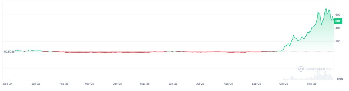 En los últimos 12 meses, ZEC aumentó un 800%, tal como se observa en el siguiente gráfico: