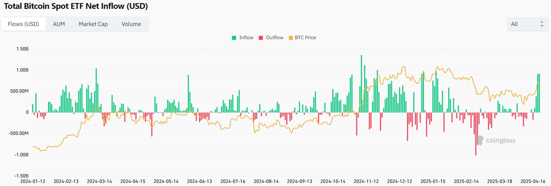 Este fenómeno refleja un renovado interés institucional y un posible cambio de tendencia en el mercado de BTC, en un contexto de optimismo macroeconómico y señales de alivio en las tensiones comerciales entre Estados Unidos y China.
