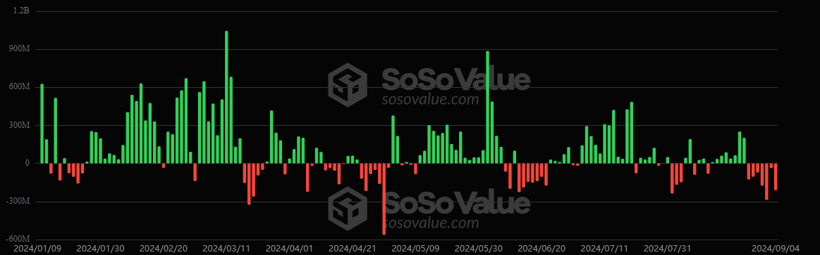 Los fondos cotizados en bolsa (ETF) en Estados Unidos basados en bitcoin (BTC) reportaron salidas netas por más de 167 millones de dólares el pasado viernes 6 de septiembre y superaron la peor racha desde su lanzamiento al mercado en enero de 2024.