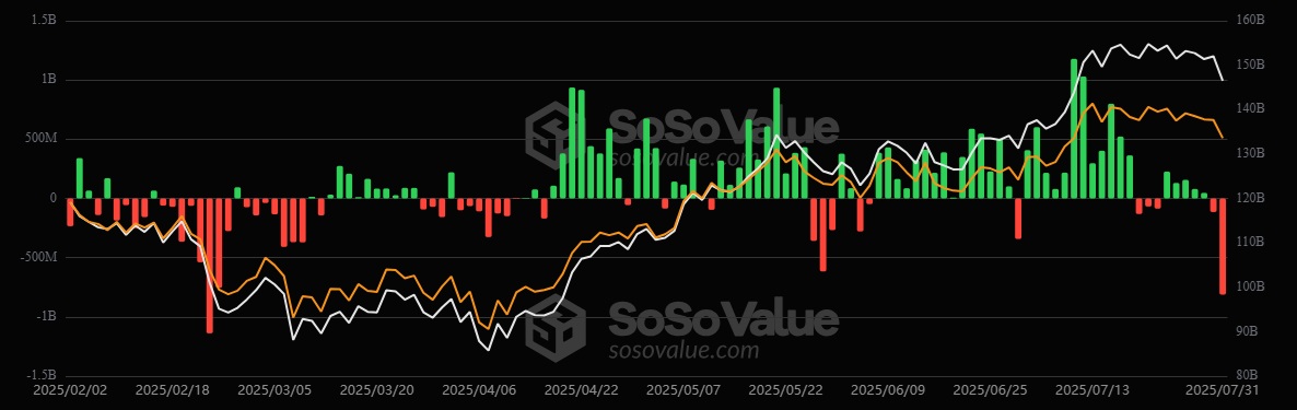 El viernes, los fondos cotizados en bolsa (ETF) de bitcoin al contado experimentaron una salida neta de 812,25 millones de dรณlares, la segunda mayor pรฉrdida diaria en la historia de estos productos, segรบn datos de SoSoValue.