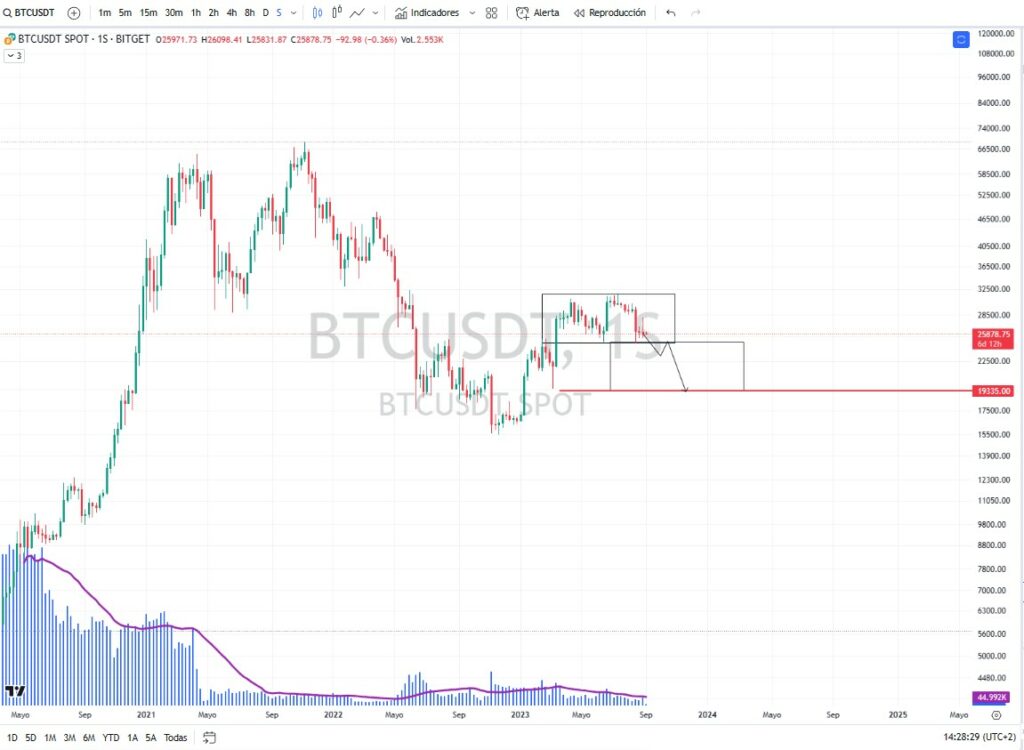 Desde una postura más positiva, el trader conocido como SantinoCripto dijo que BTC continuará lateralizando en septiembre en torno a los USD 24.000-28.000, salvo que se aprueben los ETF spot de la moneda. Con eso, estima que “el precio se dispararía”, tal vez al nivel psicológico de los USD 45.000-50.000 que prevaleció en el último mercado alcista.