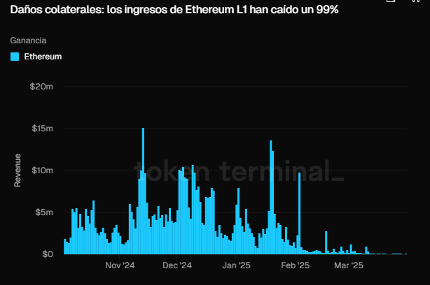 Segรบn datos de Token Terminal, los ingresos de la L1 se desplomaron un 99% en los รบltimos seis meses.