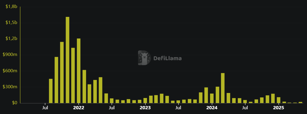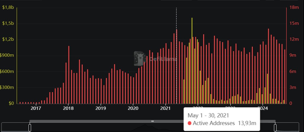 En tiempos mejores, Ethereum ganó hasta 1.610 millones de dólares en tarifas durante un solo mes.