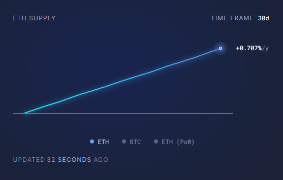 En los últimos 30 días, el suministro de ether excede en un 0,7% a la cantidad que se quema.
