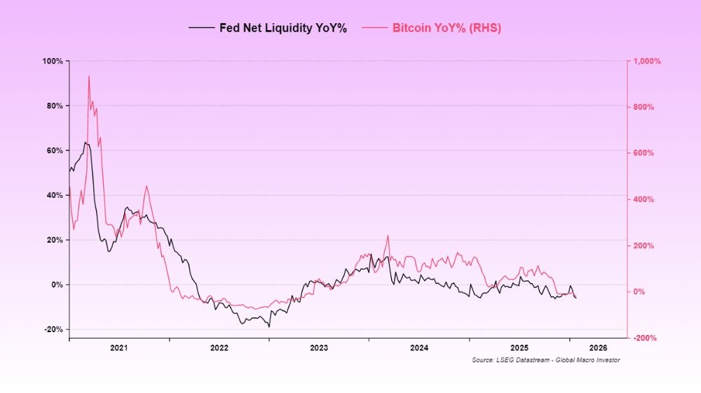En ese contexto, Pal explicรณ que normalmente utiliza la liquidez total global como referencia, ya que histรณricamente mantiene una alta correlaciรณn con bitcoin y el Nasdaq a largo plazo. Sin embargo, en esta fase del ciclo considera que la liquidez total de Estados Unidos estรก siendo mรกs determinante.