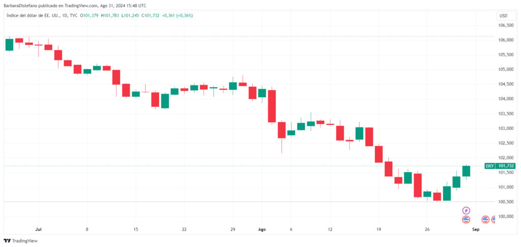 Ademรกs, advierte que los datos laborales que se publicarรกn el 4 y 6 de septiembre pueden tener el poder de mover los mercados y atraer algo de liquidez. La explicaciรณn detrรกs de ello es que pueden aliviar o acrecentar los temores de recesiรณn dependiendo de sus resultados.