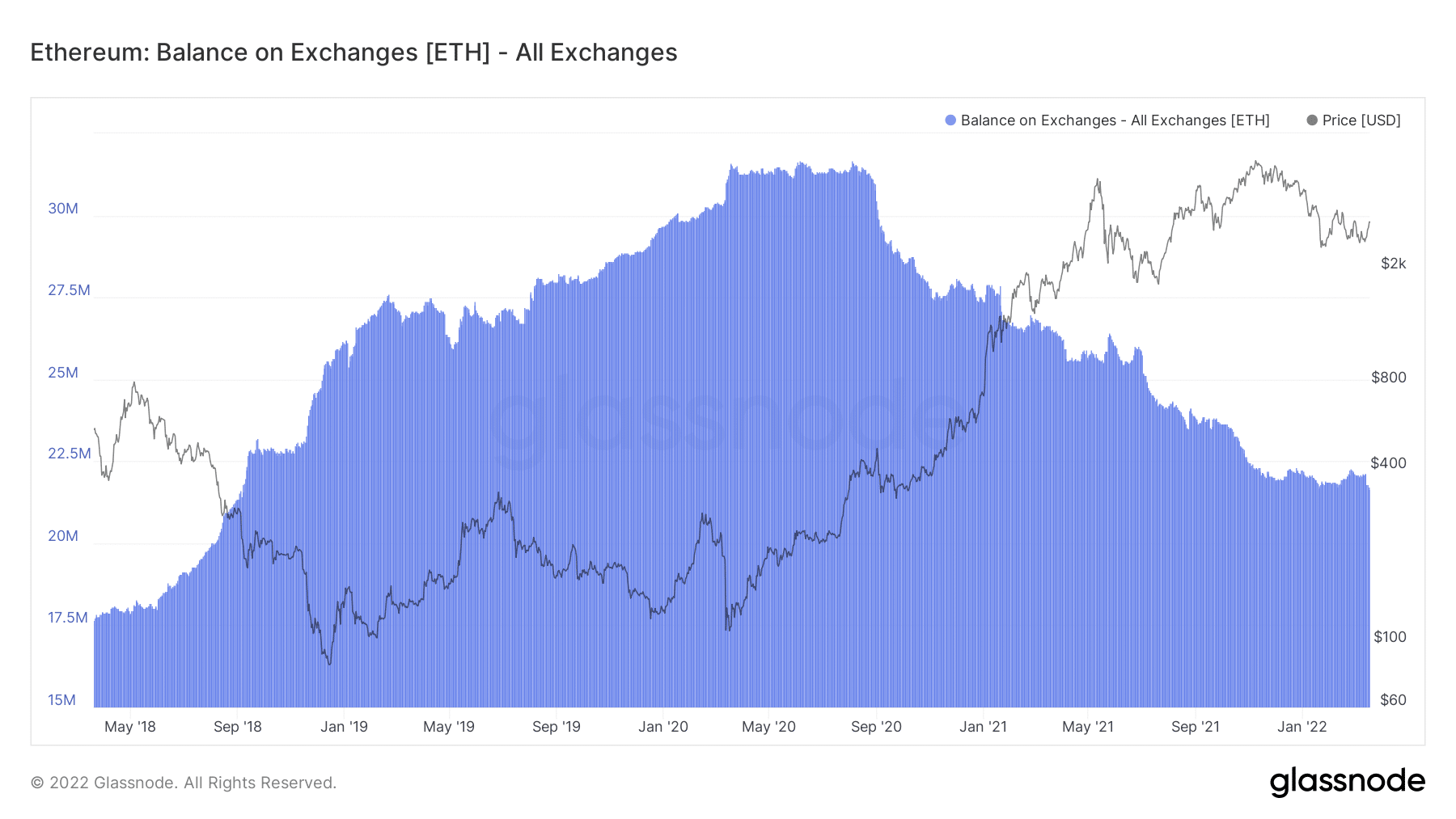 Hay más de 21 millones de ETH en casas de cambio, el número más bajo desde 2018.