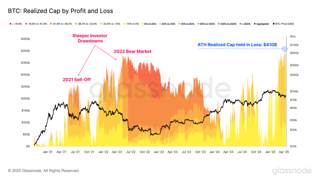 A pesar de esto, resalta que «el rendimiento de los activos duros sigue siendo notable», con el oro subiendo a un nuevo máximo histórico de USD 3.300 por onza y bitcoin resistiendo por encima de los USD 80.000. En palabras de Glassnode, “se podría considerar que se trata de una señal fascinante en un momento en el que los cimientos del sistema financiero entran en un período de transición y cambio”.