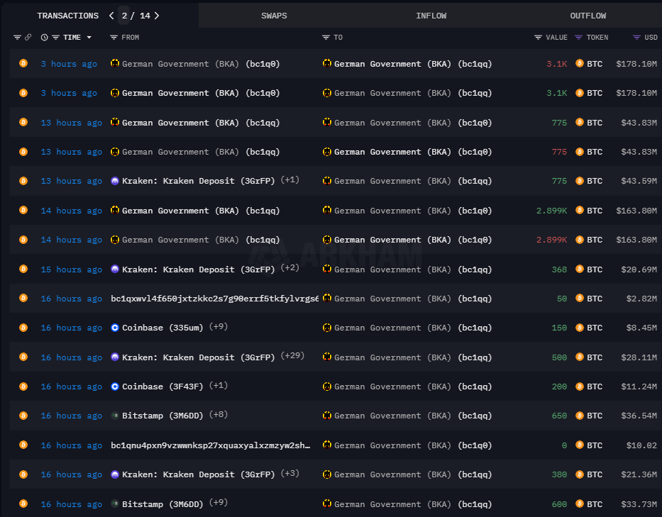 Pero, en las últimas horas, se conoció una situación particular. Desde las wallets de varios exchanges, entre ellos Coinbase, Kraken y Bitstamp se está transfiriendo bitcoin hacia las direcciones del Gobierno de Alemania.