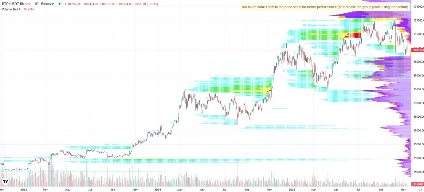 Además, ahora se observa una enorme cantidad de órdenes de compra alrededor de los 102.000 dólares: muchos traders esperan ejecutar compras allí, lo que podría funcionar como otro soporte clave si BTC sigue cayendo.