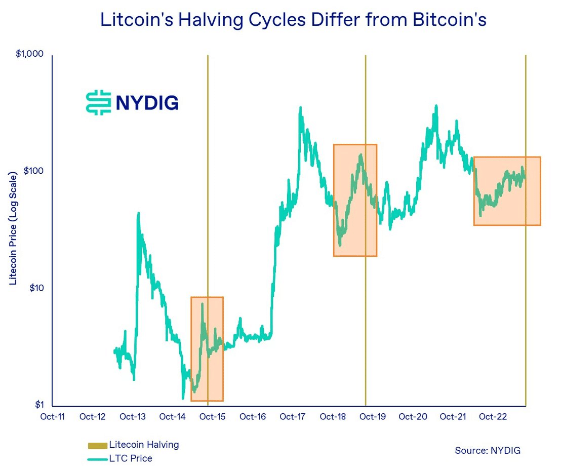 El comportamiento de litecoin (LTC) con relación a su halving, que tendrá lugar mañana, 2 de agosto, proporcionaría pistas valiosas sobre lo que los inversionistas de bitcoin (BTC) pueden esperar en el halving de 2024. Así lo afirma según un estudio reciente de la firma de inversiones New York Digital Group (NYDIG).