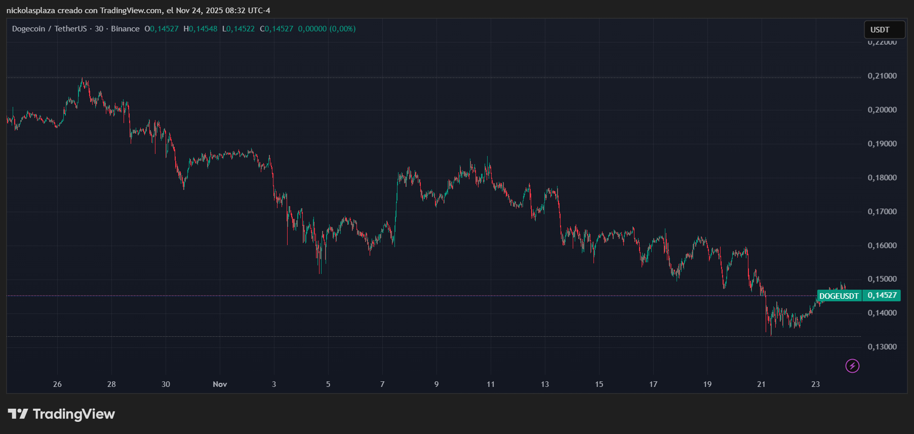 El lanzamiento del ETF no ha tenido mayor impacto en el precio de DOGE, que solo ha tenido un incremento de 0,14% en su cotizaciรณn en las รบltimas 24 horas.