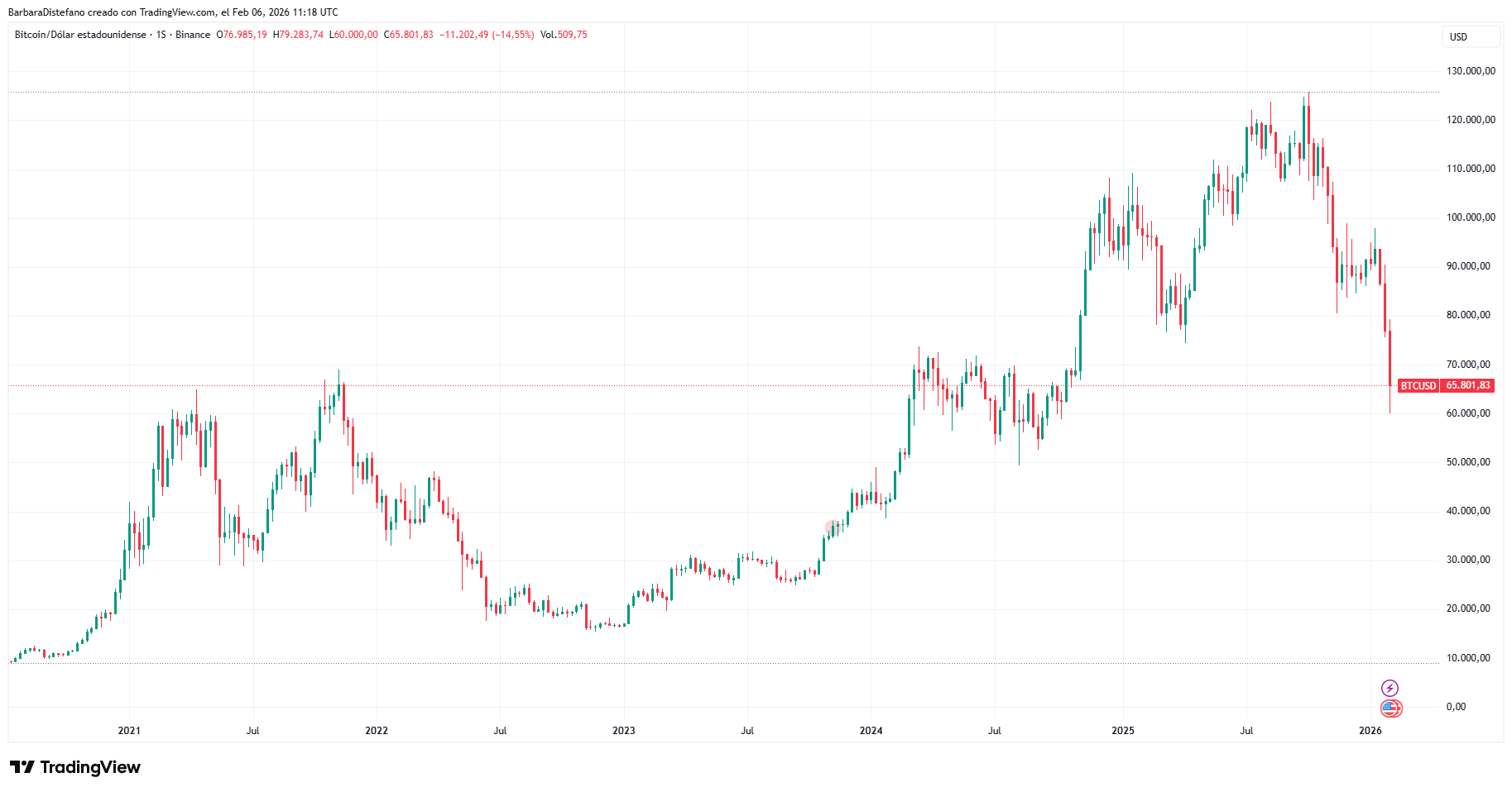 Esto ocurre mientras bitcoin se encuentra un 50% debajo del precio máximo histórico de 126.000 dólares marcado hace tres meses, en octubre. La caída se agudizó especialmente esta semana, retrocediendo 20.000 dólares.