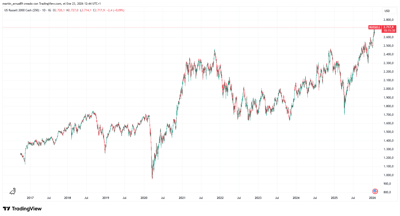 Cabe señalar que el Russell 2000 es un índice bursátil que mide el desempeño de las acciones de pequeña capitalización en Estados Unidos.