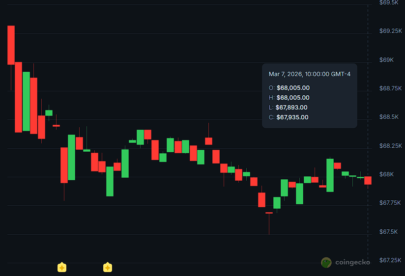 Mientras el conflicto en Medio Oriente amenaza con intensificarse, bitcoin (BTC) lucha por mantener su estabilidad, aferrándose a la marca de los 68.000 dólares tras haber perdido recientemente el soporte psicológico de los 70K dólares.