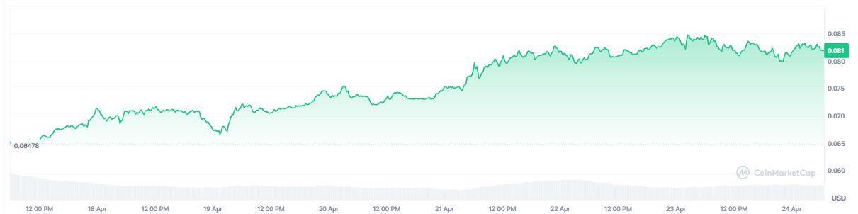 Del 18 al 24 de abril, el precio de JST pasรณ de 0,064 a 0,082 dรณlares, lo que representa una subida del 28,1%.