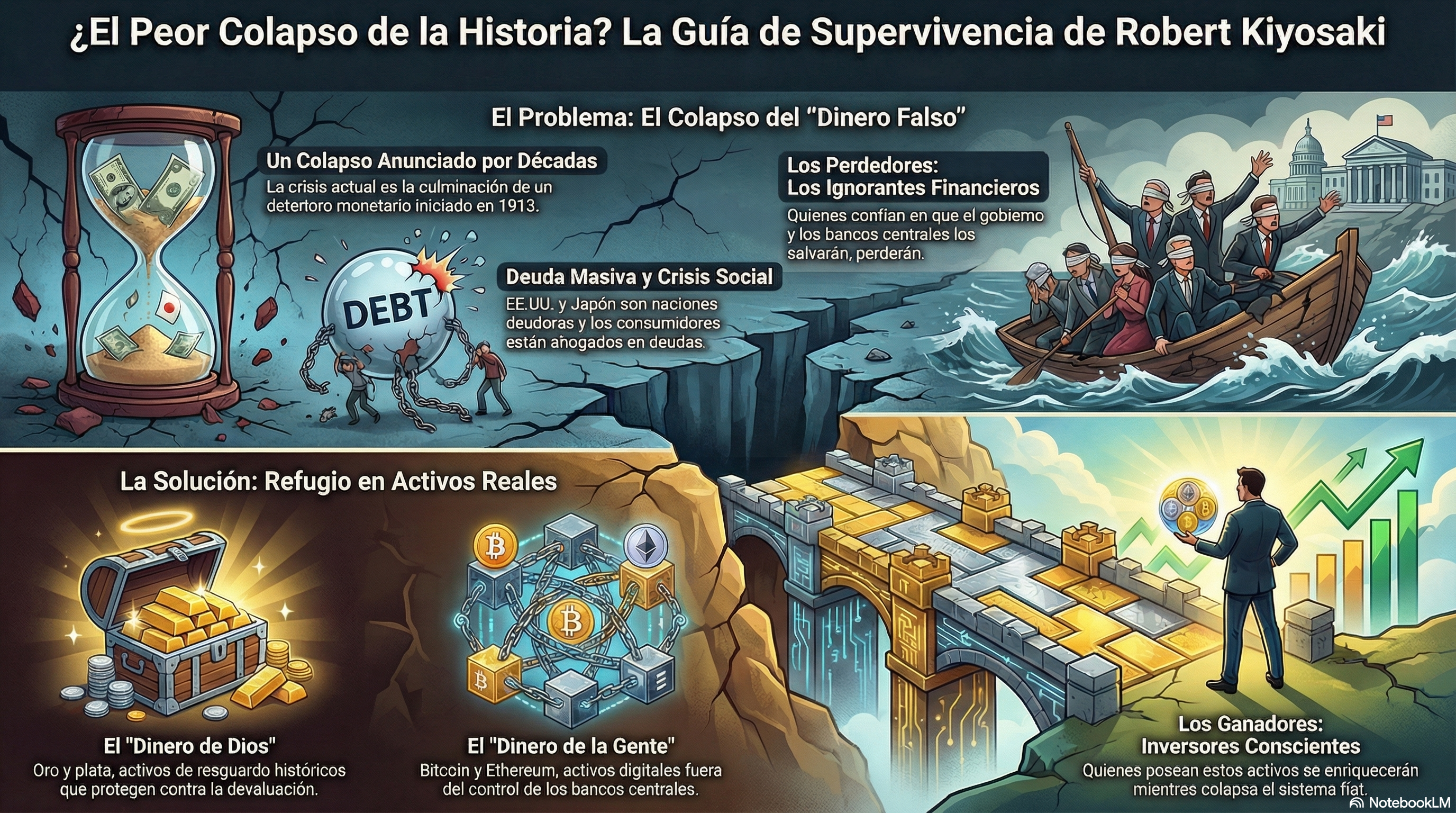 Para Kiyosaki, la crisis actual no es un evento repentino, sino la culminación de un largo proceso de deterioro monetario.