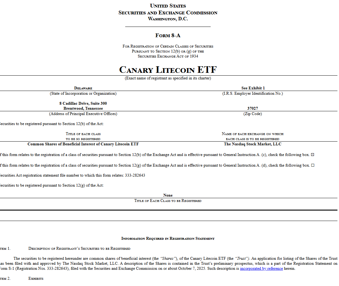 La clave de esta movida radica en el procedimiento de registro. Canary Capital presentรณ las solicitudes 8-A, un documento que registra formalmente las acciones del ETF bajo la Ley de 1934 para su negociaciรณn en una bolsa de valores. Este paso es tan crucial como la declaraciรณn de registro S-1, que registra los valores bajo la Ley de 1933.