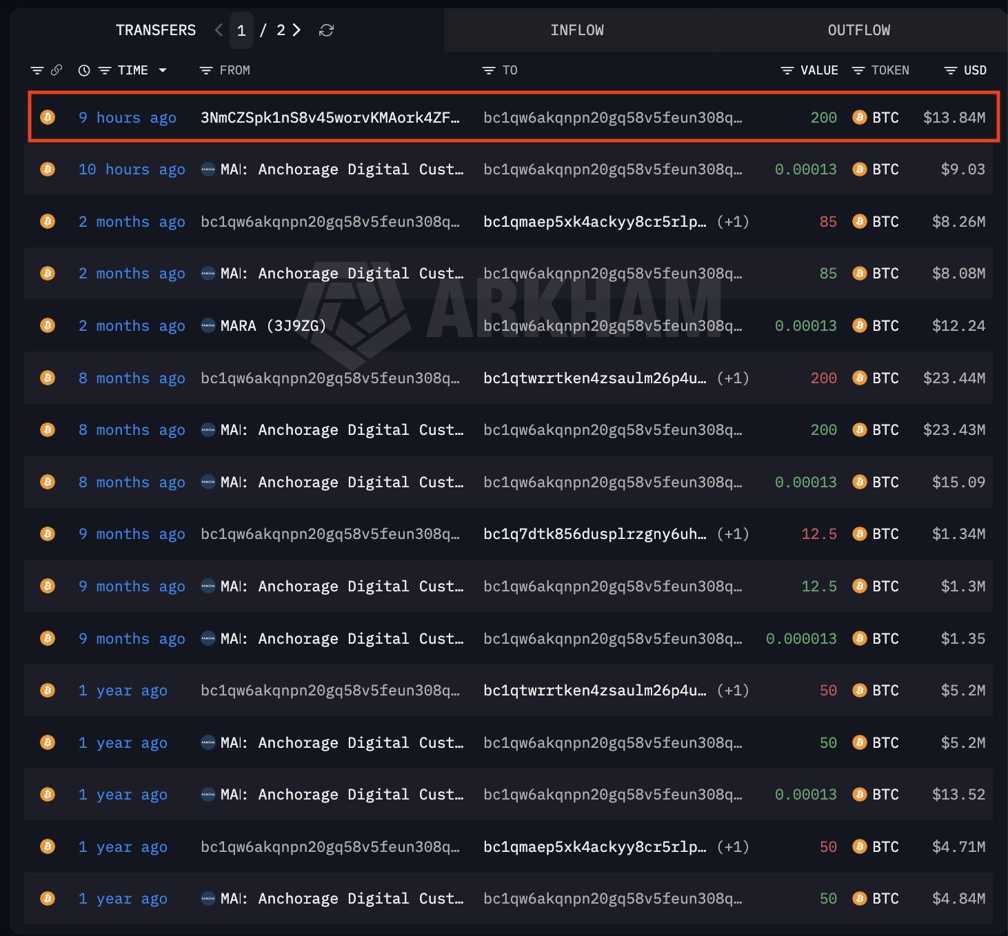 Los 200 BTC fueron movidos a una dirección que Arkham identifica como destinada a vender.