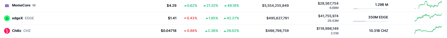 EdgeX (EGDE) y chiliz (CHZ) completan el podio.