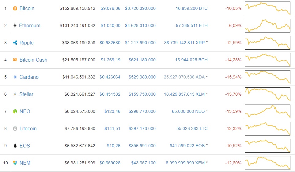 Durante las últimas semanas el mercado global de criptoactivos ha experimentado movimiento a la baja, debido a los distintos anuncios de regulación en los principales países alrededor del mundo. Hoy casi todos los criptoactivos del mercado presentan porcentajes de descenso de más de dos cifras.