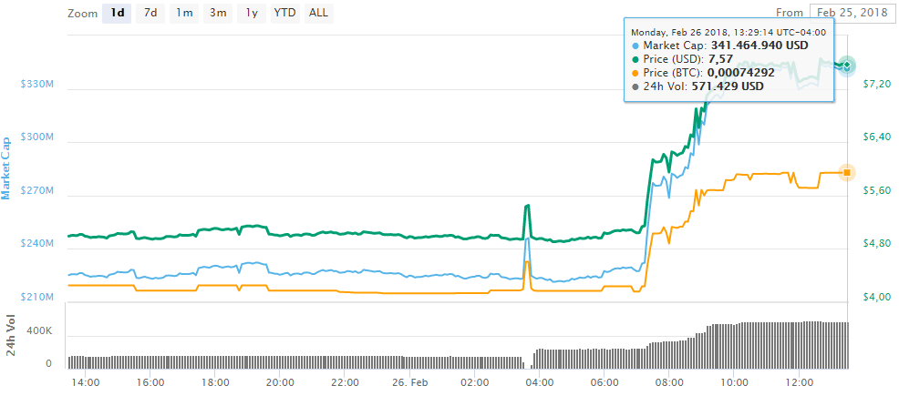 Es notable que la moneda presentaba un precio muy estable y su valor se disparó apenas una hora después de que fuera realizado este anuncio.