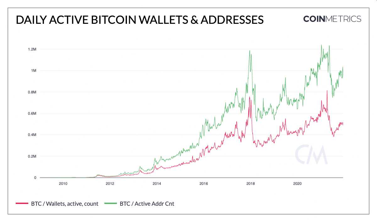 A partir de nuevas métricas desarrolladas por Coin Metrics para conocer mejor el uso de bitcoin, comentadas por este medio el sábado 18, esa firma analítica reveló que el promedio diario de direcciones activas de bitcoin la semana pasada es de 1 millón, mientras que hay unas 500.000 carteras de bitcoin activas diariamente, en promedio.