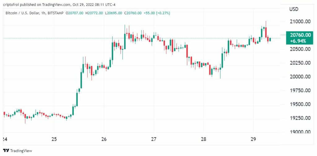 Después de estar por tres semanas por debajo de los USD 20.000, el precio de bitcoin superó el pasado martes 25 de octubre esta importante barrera psicológica, lo cual tomó desprevenidos a los traders bajistas, quienes incurrieron en importantes pérdidas, tal como lo reportó CriptoNoticias.
