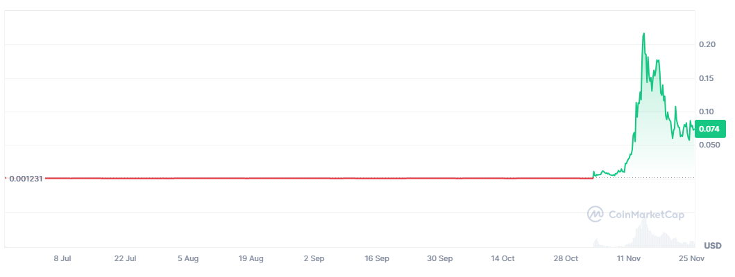 Tal como puede verse en la siguiente imagen, que es una captura de pantalla del portal CoinMarketCap, aunque el token Shrub (SHRUB) existe desde julio, fue en noviembre cuando su precio se disparรณ.